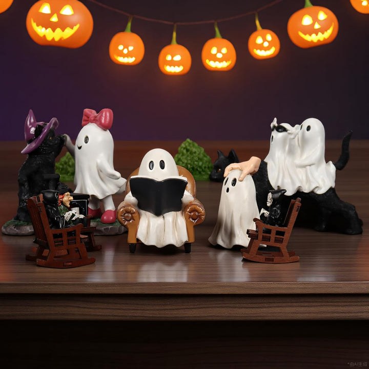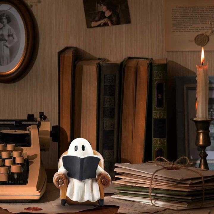 Add a touch of spooky charm to your shelves with this playful Halloween Ghost Reading Book Figurine. Perfect for book lovers and Halloween enthusiasts alike, this vintage-style decor piece brings a whimsical ghostly reader to your indoor space. Its quirky design sparks conversation while adding festive fun to your home library or living room. Celebrate the season with a ghost that loves stories as much as you do!